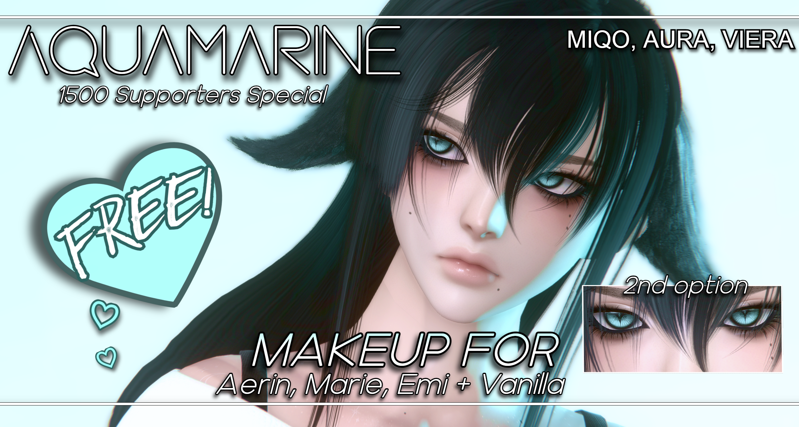 Thank you guys so much for 1500 Supporters!! i decided to do another poll and this makeup was the result! ^-^ i hope you all like it! —————————————————– [INCLUDES] ♡ Modpack FOR MIQO, VIERA Modpack for AURA Loosefiles for everyone (Xeala, Rean, Miqo, Viera) ect PSD included (without base due to ToS) for u to edit! ^^ —————————————————– Credits to VIVI for sculpt + Makeup base by Petal Credits to Yuria for Scale Psd. —————————————————– join my discord for help or if u wanna suggest something !^^ discord.gg/zzKd3qJYeG