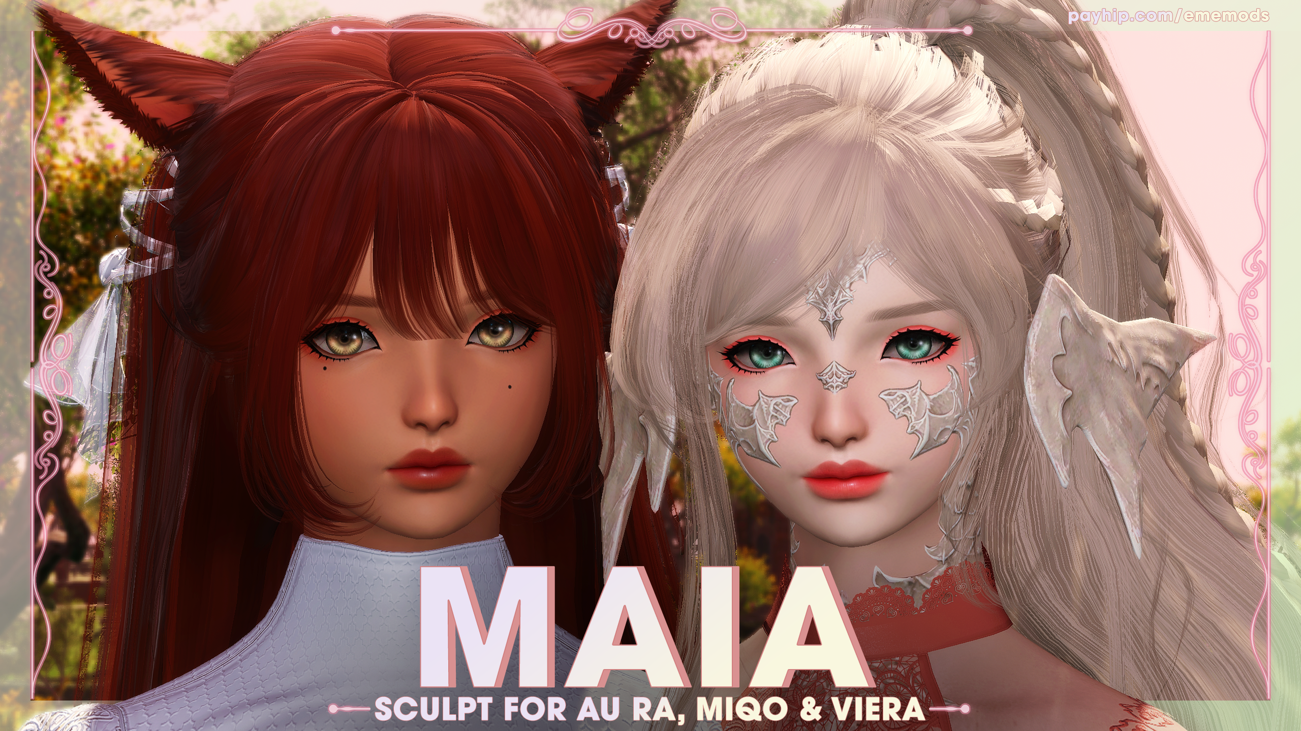 Maia is a high-poly sculpt that is made for all female Au Ra, Miqo’te and Viera faces. The sculpt is based on Viera Face 3.