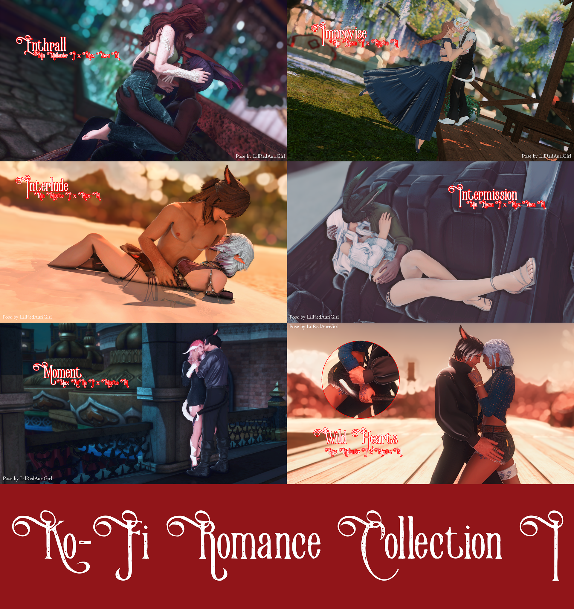 Combined pack of romantic poses previously released individually. Includes: Enthrall, Improvise, Interlude, Intermission, Moment, and Wild Hearts.