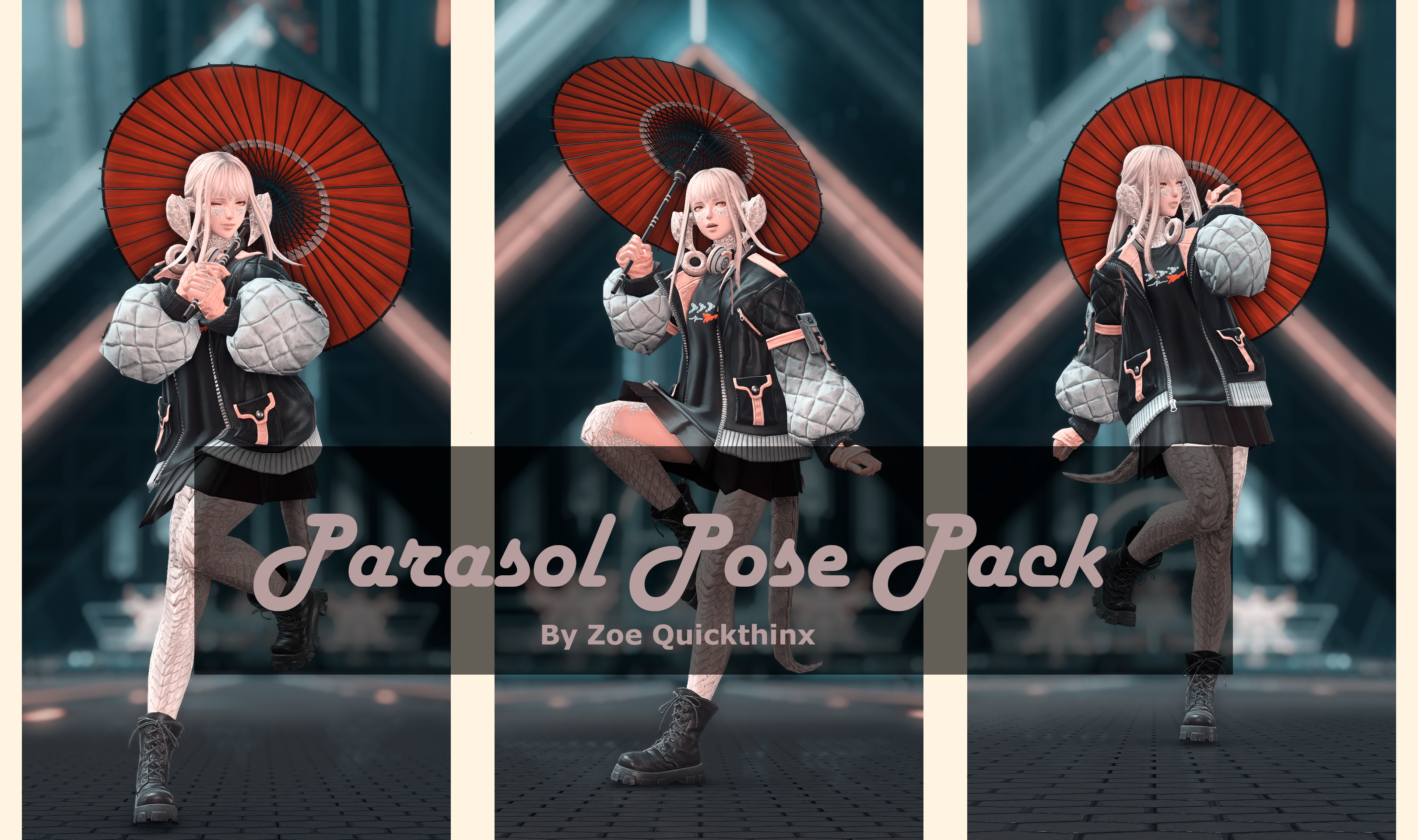 Made with min height Au Ra, Parasol size was adjusted to 0.7! the parasol might need a different size setting for other Races or heights. I recommend loading in your own expressions but the ones included should work fine for female Au Ra.